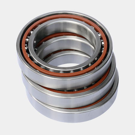單列角接觸球軸承只能承受單向作用的軸向載荷。在徑向載荷作用下,軸承內會出現一個軸向力,需以一個反向作用力來作調整。因此,這種軸承一般需靠第二個軸承來作平衡。單列角接觸球軸承可以裝入較多的鋼球,使軸承具有較高的承載能力。接觸角有15°、25°、40°三種,后綴代號分別為 C、AC、B。單列角接觸球軸承包括非分離型、分離型兩類。非分離型軸承根據不同應用場合又分成標準、高速、超高速三個系列;分離型軸承的內圈和外圈可分別安裝,僅用在磁電機等安裝位置受限制的部件中,該種軸承又稱為磁電機軸承。非分離型軸承保持架,以內圈引導纖維增強酚醛樹脂保持架為標準結構,軸承代號中不標注。采用其它保持架時,分別以相應的后綴代號注明:TA:外圈引導纖維增強酚醛樹脂保持架TN:增強尼龍 66 模注保持架M:黃銅車制保持架分離型軸承(即:磁電機軸承)主要采用增強尼龍 66 模注保持架,如果需要亦可提供采用黃銅板沖壓保持架的軸承。帶增強尼龍 66模注保持架的軸承適用于大多數應用場合,可在-30℃~120℃正常工作。