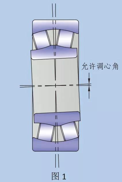 調(diào)心滾子軸承的設(shè)計,令其具有自動調(diào)心功能,即軸承本身可調(diào)節(jié)內(nèi)、外圈間的角度對準(zhǔn)誤差。在正常載荷及工作條件下,內(nèi)圈轉(zhuǎn)動時,容許存在右表中給出的不對心值。